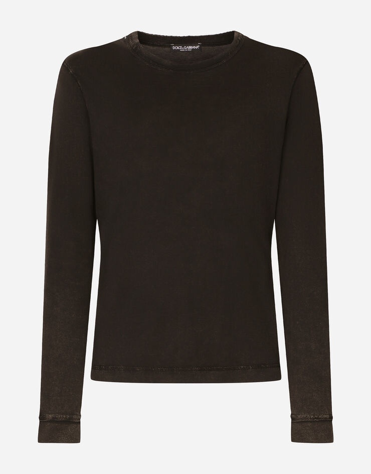 Overdyed cotton jersey T-shirt with raw-cut details: • Regular fit • Round neck • Long sleeves • Side slits • Black • The piece measures 72 cm from the rear collar seam on a size IT 48 • The model is 185 cm tall and wears a size IT 48 • Made in Italy Care And Details External composition: 100% Cotton