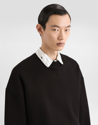 The scene is set for Dolce&Gabbana's distinctive and iconic aesthetic codes in the Collection from Men's Fall/Winter 2025 Fashion Show. The evening lights up with radiant brooches and is enriched with classic suits and blazers of timeless elegance. This long-sleeved crew neck sweatshirt is an essential piece for the modern man, combining comfort and style in a versatile and timeless design. Long-sleeved sweatshirt: • Black • Oversized fit • Ribbed crew neck • Ribbed collar, cuffs and hem band • Sweatband in jersey at the back • The model is 185 cm tall and wears a size 48 IT • Made in Italy External Composition: 100% Cotton