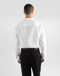 Italy and its beauty are reflected in the Men’s SS25 Collection. Woven raffia and leather give life to jackets, polo-shirts and sweaters to celebrating Italian craftsmanship. The color palette ranges from Nero Sicilia black to burgundy, contributing to conveying a sense of eternal elegance. Refined accessories complement the look: belts and loafers with hand-finished details and oversize bags, such as the Sicily, the Marlene with crocodile-effect print and the versatile Adamo tote. Long-sleeved V-neck shirt in linen fabric: • White • Regular fit • Jacket collar • Long sleeves • Button fastenings • The piece measures 80 cm from the rear collar seam on a size IT 40 • Made in Italy External composition: 100% Linen