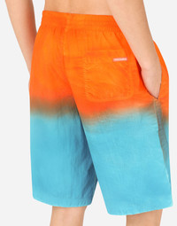 Long swim trunks with tie-dye print