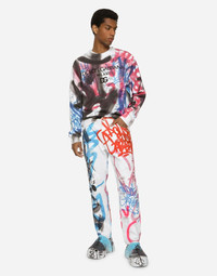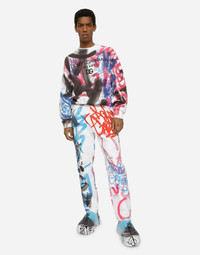 Five-pocket jeans with spray-paint graffiti print: • Loose fit • Fly-covered zipper and button fastening • Metal Dolce&Gabbana logo tag on the back • The item measures 99 cm on the outer leg and the hem is 18 cm wide on a size IT 48 • The model is 185 cm tall and wears a size IT 48 • Made in Italy Care And Details External composition: 100% Cotton