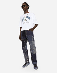 Five-pocket loose-fit jeans in stretch patchwork denim: • Loose fit • Fly-covered zipper and button fastening • Metal Dolce&Gabbana logo tag on the back • The item measures 99 cm on the outer leg and the hem is 18 cm wide on a size IT 48 • The model is 185 cm tall and wears a size IT 48 • Made in Italy Care And Details External composition: 98% Cotton 2% Spandex