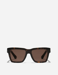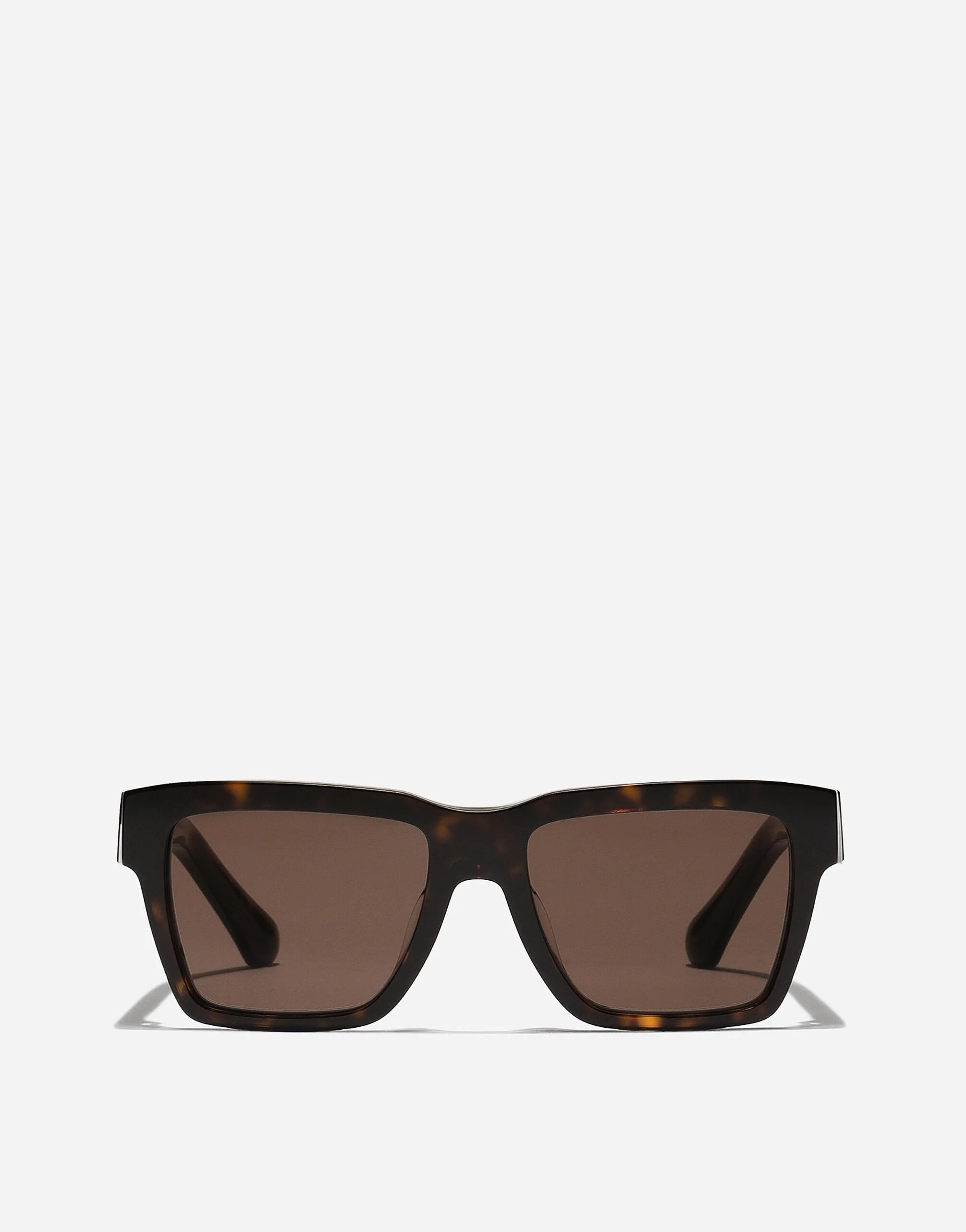 Strong personality and elegance for this new acetate style with rectangular shape, matched with geometrical temples enriched by a mirrored logo plaque. • Havana acetate frame • Havana acetate temples • Dark brown lenses • 100% UV protection • Size: 55 - 18 - 145 mm • Fitting: Universal • Packaging: Istitutional • Made in Italy