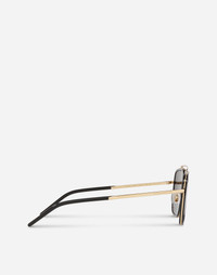 Unique and innovative design for every situation. • Shiny gold and shiny black metal frame • Shiny gold temples • Black full polar lenses • Frame suitable for prescription lenses • 100% UV protection • Size lens - bridge - temple: 57 - 17 - 140 mm • Fitting: Adjustable nosepads • Packaging: Institutional • Made in Italy