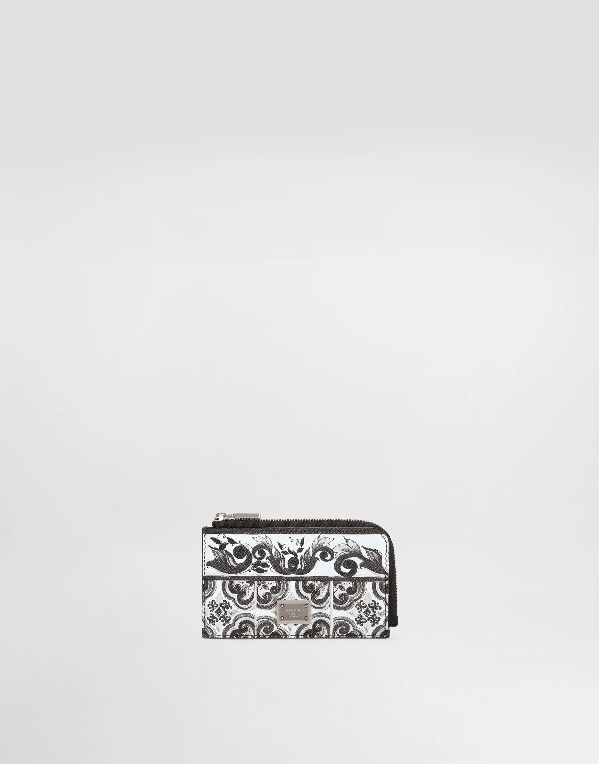 Discover the timeless elegance of our Calfskin card holder with Majolica print. An exclusive accessory that combines craftsmanship and design in a single distinctive piece. Majolica-print Calfskin card holder: • Multi-coloured • Zip closure • Antique palladium electroplating • External customization with bigalvanic plate • Internal customization with logo label • Item equipped with a logo bag and a logoed box • Measurements: H7 x W12 x D1 cm • Made in Italy The difference in the print placement that you may find on this product is a feature of Dolce&Gabbana’s “Handmade” pieces. A detail that makes every garment or accessory unique and exclusive. External Composition: 100% Calfskins Internal Composition: 90% Calfskin, 10% Viscose