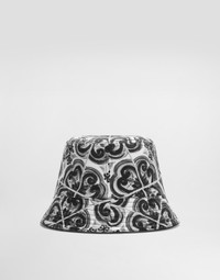 This bucket hat is perfect for adding a touch of artistic and sophisticated style to your everyday look, thanks to its majolica print and signature that distinguishes it. Bucket hat in Majolica print drill: • Multi-coloured • Reversible • Item equipped with a logoed box • Made in Italy The difference in the print placement that you may find on this product is a feature of Dolce&Gabbana’s “Handmade” pieces. A detail that makes every garment or accessory unique and exclusive. External Composition: 96% Cotton, 3% Elastane, 1% Polyester Internal Composition: 100% Cotton