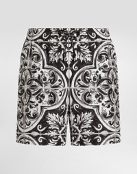 These medium boxer shorts with Majolica print are a must-have for those looking for comfort and style at the beach. With their unique design and thoughtful details, they embody the timeless elegance of Dolce&Gabbana. Majolica-print swim medium boxer shorts: • Multi-coloured • With pocket • Linear crotch • Fold-back belt • Inner briefs • Equipped with a coordinated pouch with zip closure • Made in Italy The difference in the print placement that you may find on this product is a feature of Dolce&Gabbana’s “Handmade” pieces. A detail that makes every garment or accessory unique and exclusive. External Composition: 100% Polyester Internal composition: 12% Elastane, 88% Polyamide