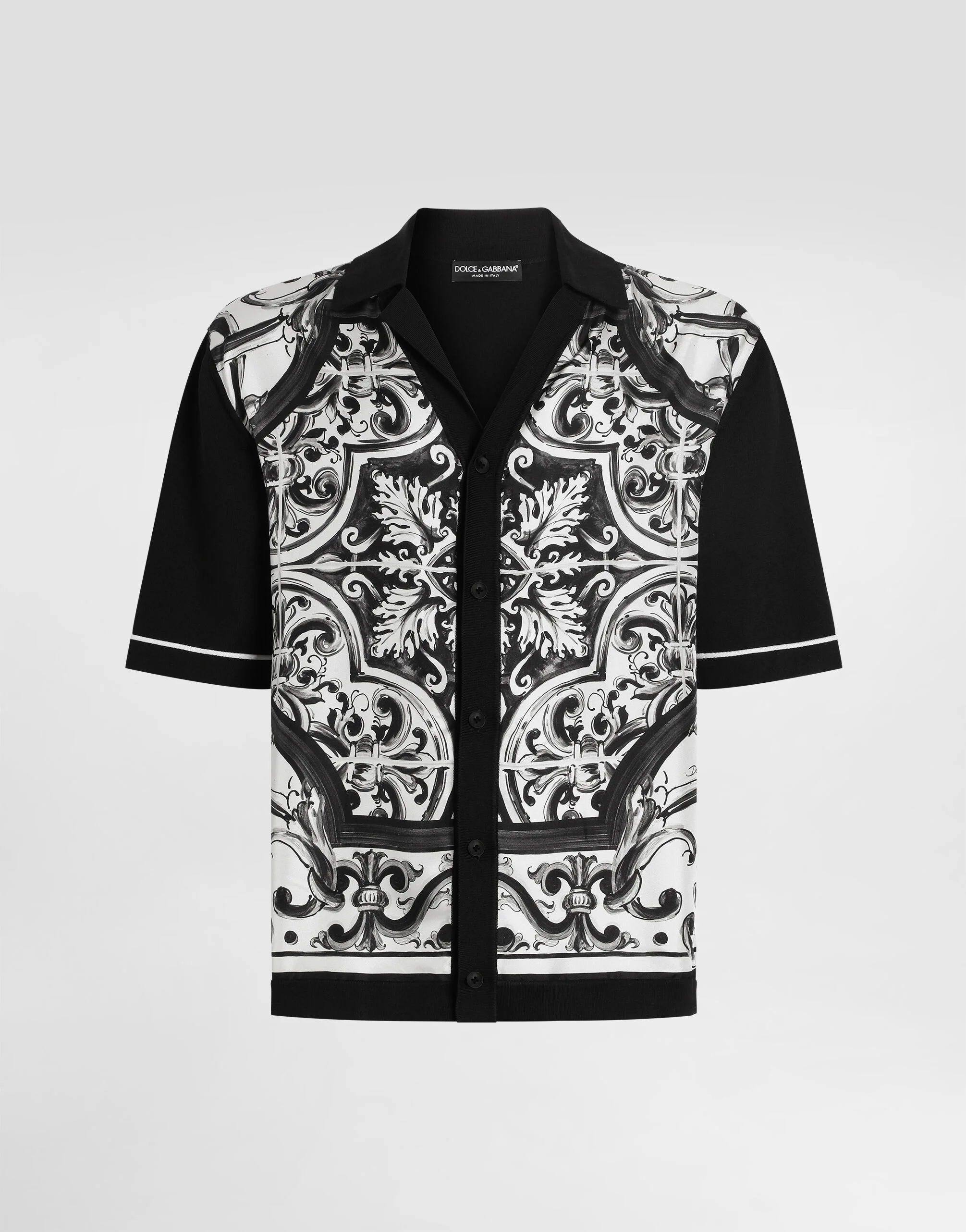 This oversized shirt is an example of casual elegance, perfect for those looking for a unique garment thanks to its Majolica print and sartorial workmanship. Silk and cotton oversized shirt with Majolica print: • Multi-coloured • Hawaii collar • Short sleeve • The model is 185 cm tall and wears a size 48 IT • Made in Italy The difference in the print placement that you may find on this product is a feature of Dolce&Gabbana’s “Handmade” pieces. A detail that makes every garment or accessory unique and exclusive. External Composition: 77% Silk, 20% Cotton, 3% Elastane