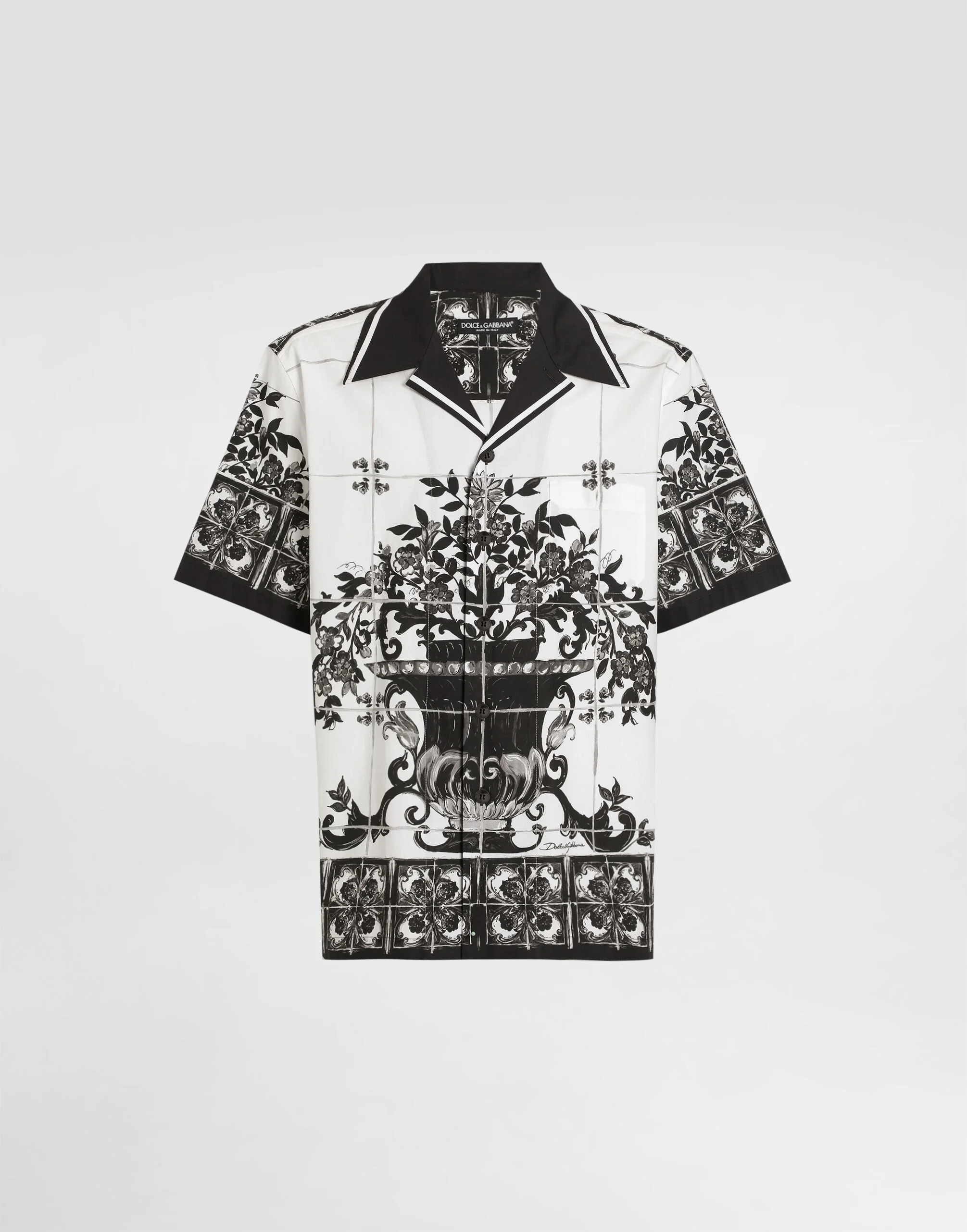 This shirt is an example of informal elegance, ideal for those who want a distinctive and sophisticated look. The Majolica print adds an artistic and unique touch to the garment, making it ideal for special occasions or to add a touch of class to the everyday wardrobe. Hawaii shirt in Majolica printed poplin: • Multi-coloured • Double fold-back on the shoulder and tailored details • Short sleeve • The model is 185 cm tall and wears a size 48 IT • Made in Italy The difference in the print placement that you may find on this product is a feature of Dolce&Gabbana’s “Handmade” pieces. A detail that makes every garment or accessory unique and exclusive. External Composition: 100% Cotton