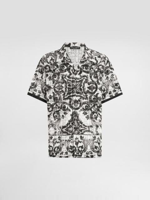 Majolica-print poplin hawaii shirt