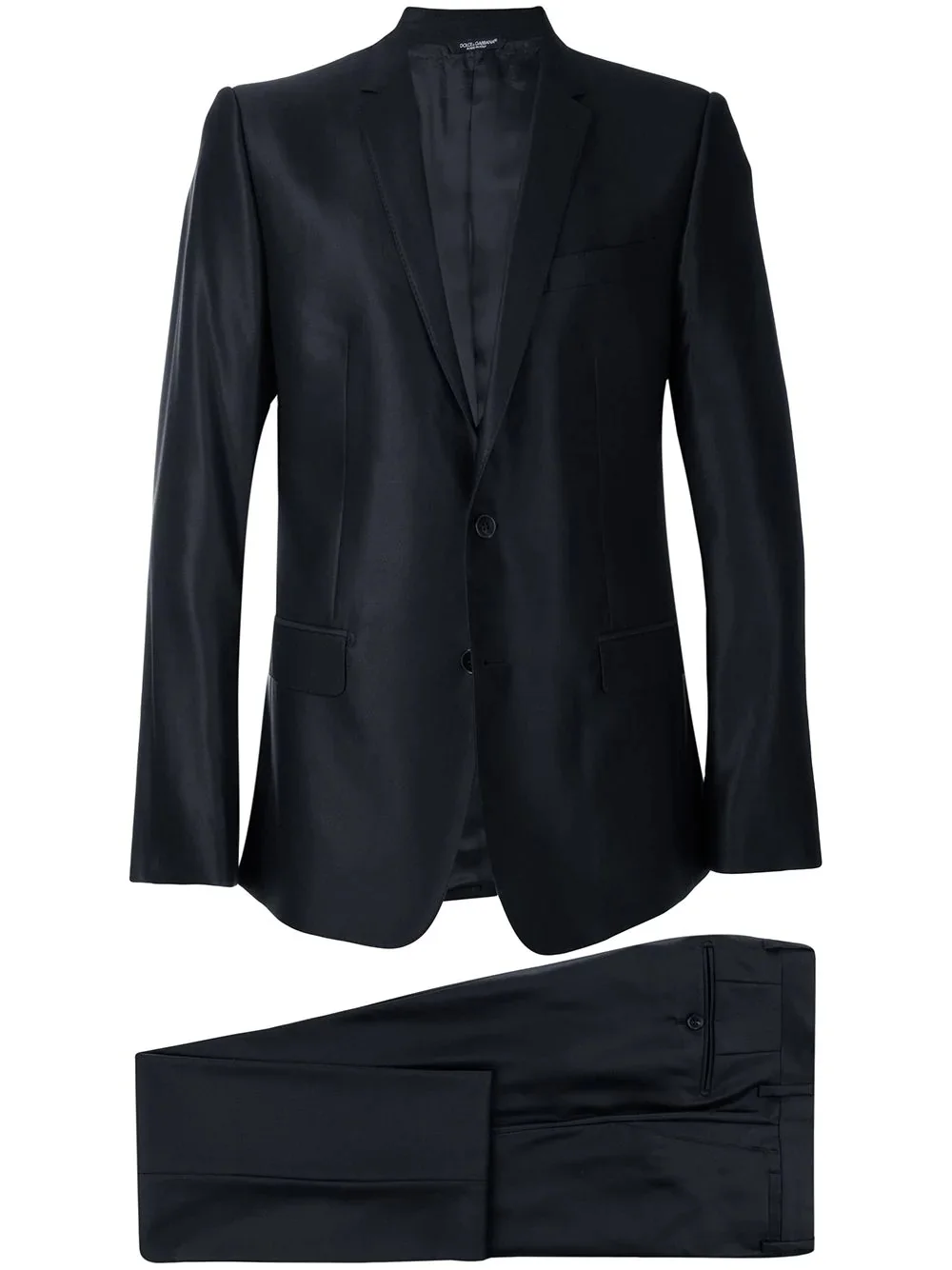 single-breasted suit Highlights - Nothing beats classic italian tailoring and dolce & gabbana continue to exemplify their expertise this spring summer 2018 with this martini-fit two piece suit, a perfect choice for your next black tie event. spun from a luxury blend of virgin wool and silk, this shine black suit features a blazer with peaked lapels, a front button fastening, long sleeves with button cuffs, a back slit at the hem, a chest pockets and front flap pockets. this dolce & gabbana suit also features a pair of trousers with a waistband with belt loops, a concealed front fastening, side seam pockets, button jetted pockets at the rear and a martini slim fit to the overall suit. Made in Italy Composition Outer: Virgin Wool 60%, Silk 40% Lining: Viscose 100% Washing instructions Dry Clean Only