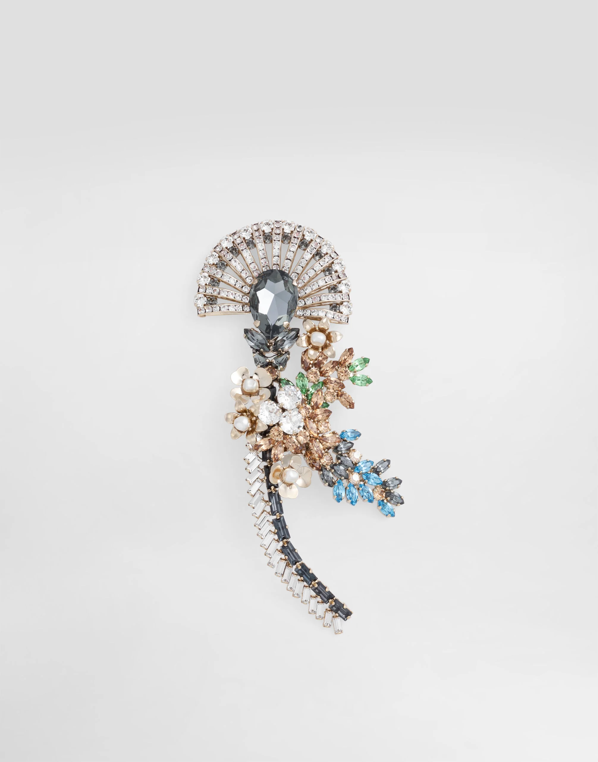 The scene is set for Dolce&Gabbana's distinctive and iconic aesthetic codes in the Collection from Men's Fall/Winter 2025 Fashion Show. The evening lights up with radiant brooches and is enriched with classic suits and blazers of timeless elegance. This maxi brooch with rhinestones, with its refined floral design, is a perfect accessory to add a touch of elegance and personality to any outfit. Maxi floral brooch with rhinestones: • Multi-colored • Length 18 cm • Made in Italy External Composition: 60% Brass, 40% Glass