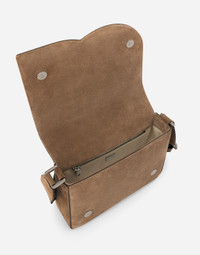 Iconic style is being given some contemporary edge, creating a new vision of the brand’s signature aesthetic. Defined by its refined geometric lines, this new crossbody bag pays tribute to our Logo. Practical and versatile, it comes in 100% soft suede and features the quilted 3D-effect DG logo. Medium suede Logo crossbody bag: • Brown • Flap fastening with concealed double magnetic fastening • Adjustable tape strap with suede details • Fabric lining and zipped pocket • Item comes with a branded dust bag • Measurements: H16 x W20 x D5.5 cm • Made in Italy External composition: 90% Goatskin 10% Cotton Internal composition: 90% Cotton 5% Acrylic 5% Goatskin