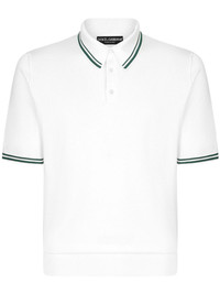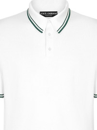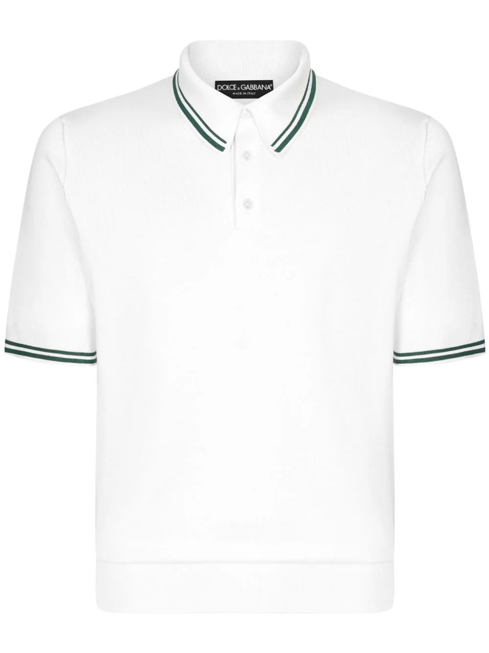 striped-border silk polo shirt Highlights - Optical white/dark green - Silk - Striped border - Polo collar - Front button placket - Short sleeves - Ribbed cuffs and hem Made in Italy Composition Silk 100%