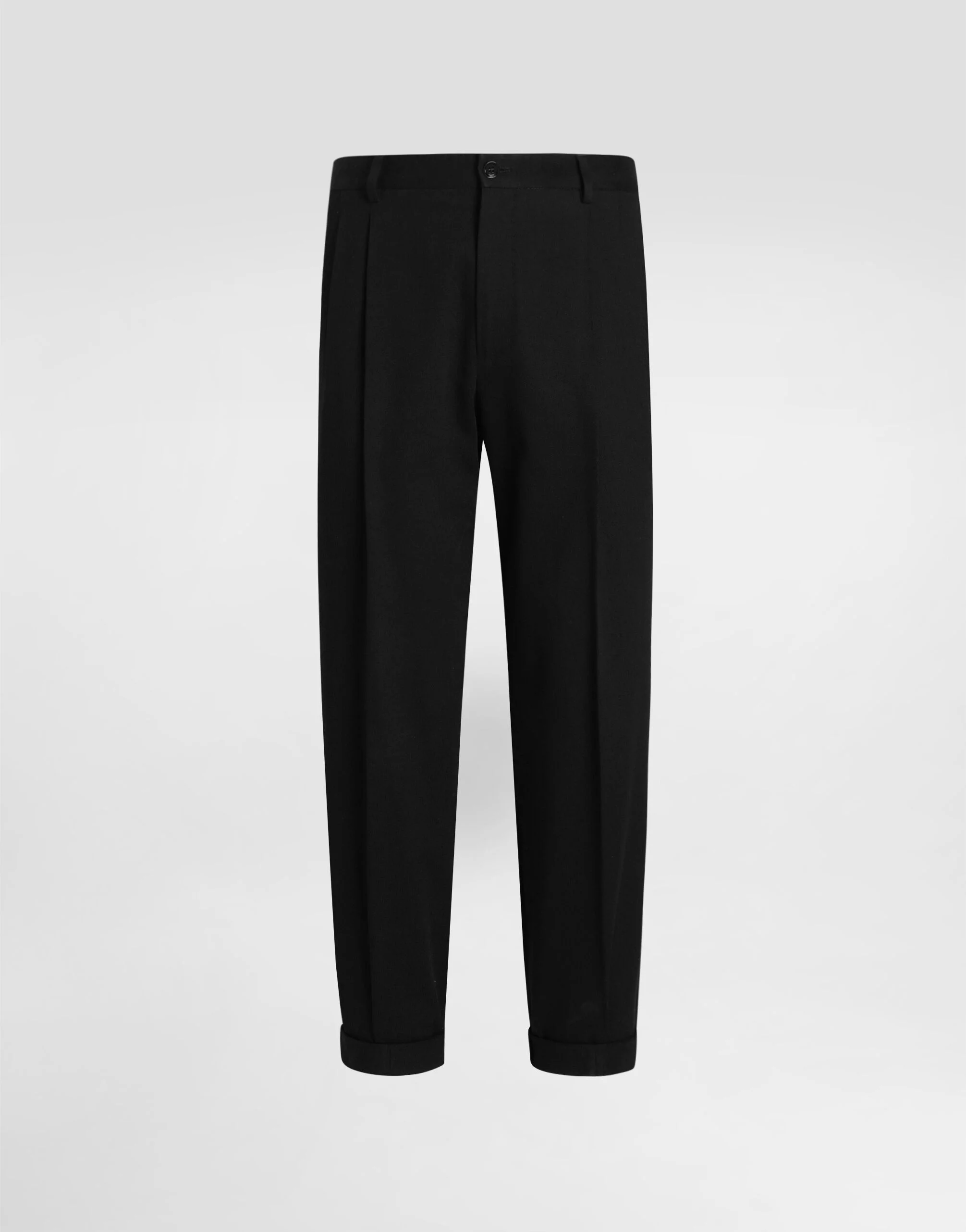Italy and its beauty are reflected in the Men’s SS25 Collection. Woven raffia and leather give life to jackets, polo-shirts and sweaters to celebrating Italian craftsmanship. The color palette ranges from Nero Sicilia black to burgundy, contributing to conveying a sense of eternal elegance. Refined accessories complement the look: belts and loafers with hand-finished details and oversize bags, such as the Sicily, the Marlene with crocodile-effect print and the versatile Adamo tote. Stretch cotton gabardine pants with double darts: • Black • Regular fit • Belt loops on the waist • Fly-covered zipper and button fastening • Front slant pockets and buttoned welt pockets at the back • The item measures 100 cm on the outer leg and the hem is 18 cm wide on a size IT 48 • Made in Italy External composition: 97% Cotton 3% Spandex