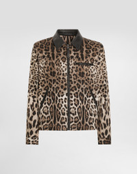 The DNA Men's Collection reimagines daily wear with bold contrasts, meticulous details, and innovative silhouettes. Outerwear stands out with clean lines and high-tech materials, merging sportiness with sophistication in sweaters, sweatshirts, and trousers. A striking color palette, including Black Sicily, caramel, cream, burgundy, and stone gray, pairs with iconic prints like Leopard and Polka dots, enhancing the collection's authentic and refined look. Leopard-print cotton drill jacket with a metal tag and the Dolce&Gabbana logo: • Leopard print • Regular fit • Front zipper fastening • Shirt collar • Side pockets and welt breast pockets with zipper • Lined • The piece measures 65 cm from the rear collar seam on a size IT 48 • Made in Italy The difference in the print placement that you may find on this product is a feature of Dolce&Gabbana’s “Handmade” pieces. A detail that makes every garment or accessory unique and exclusive. External composition: 83% Cotton 15% Lambskin 2% Spandex Internal composition: 100% Cotton