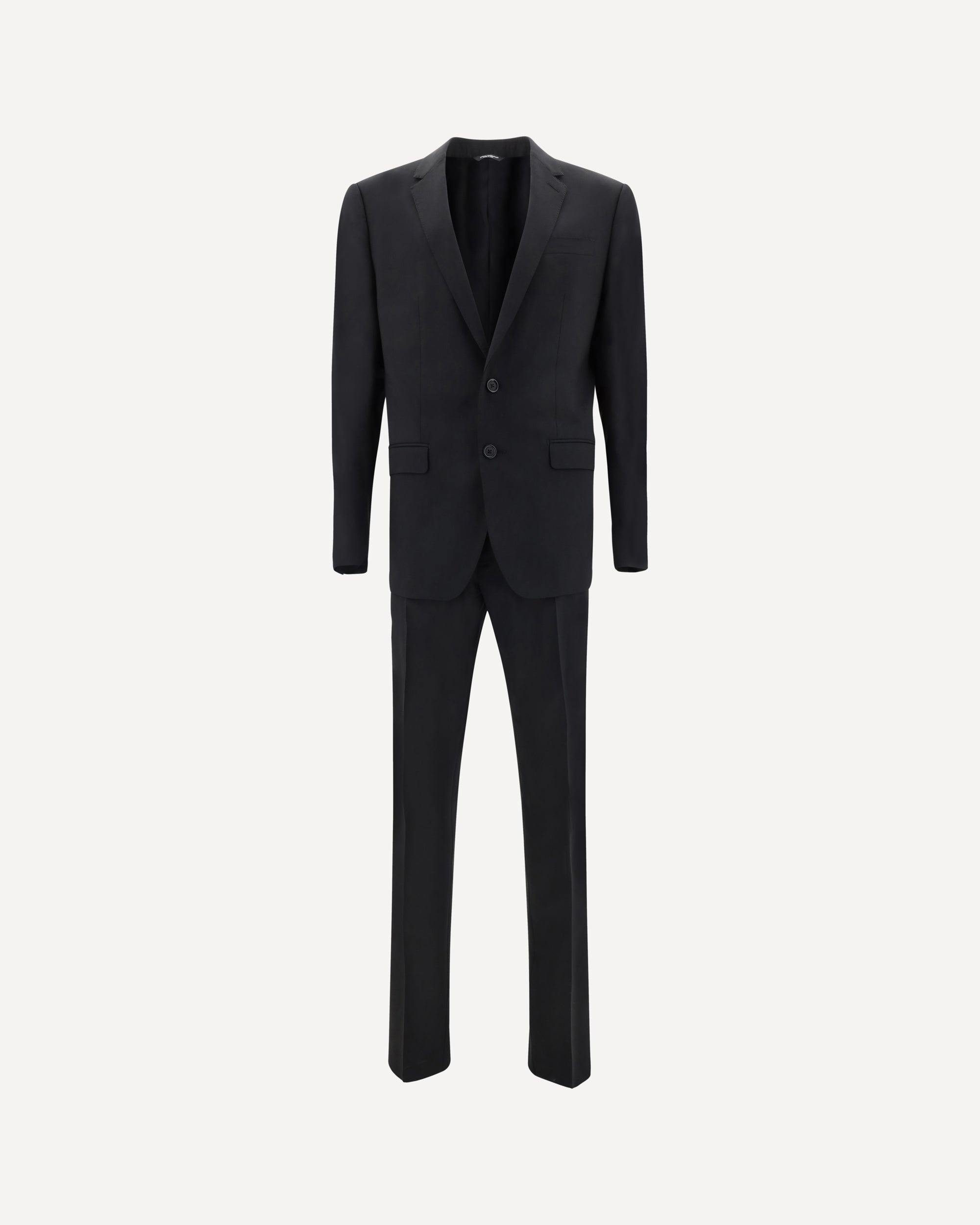 Dolce&Gabbana's Virgin Wool Suit is a perfect blend of traditional elegance and contemporary sophistication. The blazer features a single-breasted button closure, creating an elegant, structured silhouette. The two patch flap pockets on the front, slit breast pocket and classic lapels add classic details. The pants complete the look with a classic fit, featuring a zipper and button closure and two side slash pockets. The two welt pockets on the back and belt loops on the waistband offer functionality and style. DETAILS - Sku: GK0EMTGF874_N0000 - Season: SS25 - Fit: Regular - Composition: GENERAL 98% Fleece Wool 2% Elastane - MADE IN ITALY