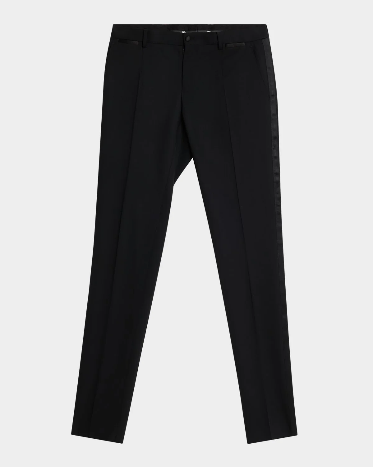 Dolceamp;Gabbana trousers are crafted from a woolblend with silk satin trim for a subtle yet bespoke touch Regular rise Flat front Side slip pockets Buttoned back besom pockets Satintrim ticket pockets Classic fit through straight legs Buttonzip front; belt loops Virgin wool/silk/polyester Dry clean Made in Italy