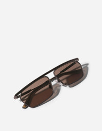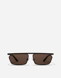 Protagonist of the FW25 men's fashion show, this sleek narrow frame draws inspiration from vintage styles, enhanced by thin metal temples featuring an extended DG logo for a distinctive, elegant touch. The sophisticated bi-color execution, paired with classic masculine tones, completes the look. • Brown metal frame • Brown metal temples with black terminals • Dark brown lenses • 100% UV protection • Size bridge - temple - lens: 14- 145 - 34.8 mm • Fitting: Adjustable nosepads • Packaging: Institutional • Made in Italy