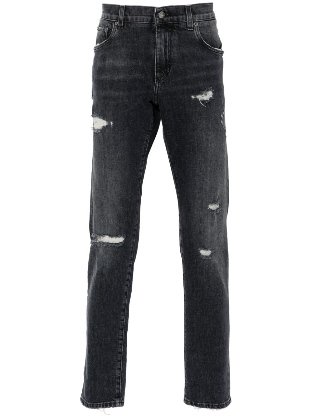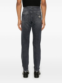 slim-fit jeans Highlights - Black - Cotton blend - Denim - Concealed fly and button fastening - Ripped detailing - Distressed effect - Belt loops - Classic five pockets - Silver-tone logo plaque - Slim cut Made in Italy Composition Cotton 98%, Elastane 2% SIZE & FIT Model measurements Height 6 ft 1 in(1.86 m) Bust/Chest 35.82 in(91 cm) Hips 36.61 in(93 cm) Waist 28.34 in(72 cm) FittingInformation Designed for a slim fit, these jeans offer a comfortable fit that sits just away from the leg Constructed from stretch denim, this piece offers a stretch fit with durability