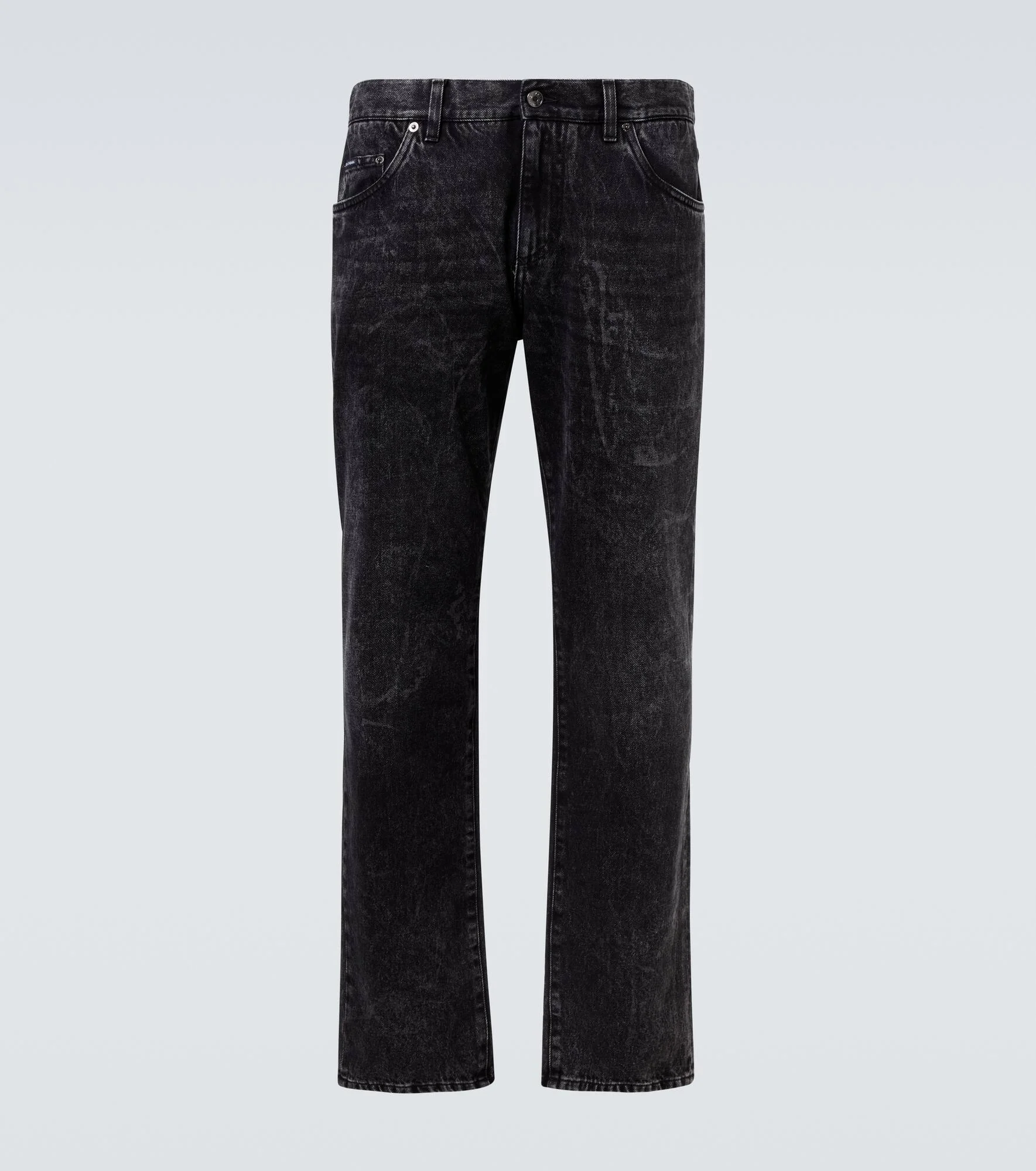 Add these straight jeans from Dolce&Gabbana to your everyday denim rotation. Italian-made from pure cotton, this pair features a mid-rise waist, belt loops, and a classic five-pocket construction. Product Details - Material: 100% cotton - Care instructions: machine wash at 30 degrees - Made in Italy - Designer color name: Variante Abbinata - Item color: gray - Hardware color: silver - Closure: zip and button fastening - Pockets: five pockets - Belt loops - Item number: P01077050 Size & Fit - True to size - Non-stretchy fabric - Straight leg - Mid-rise - Height of model is 188cm-74" and wears a size 50