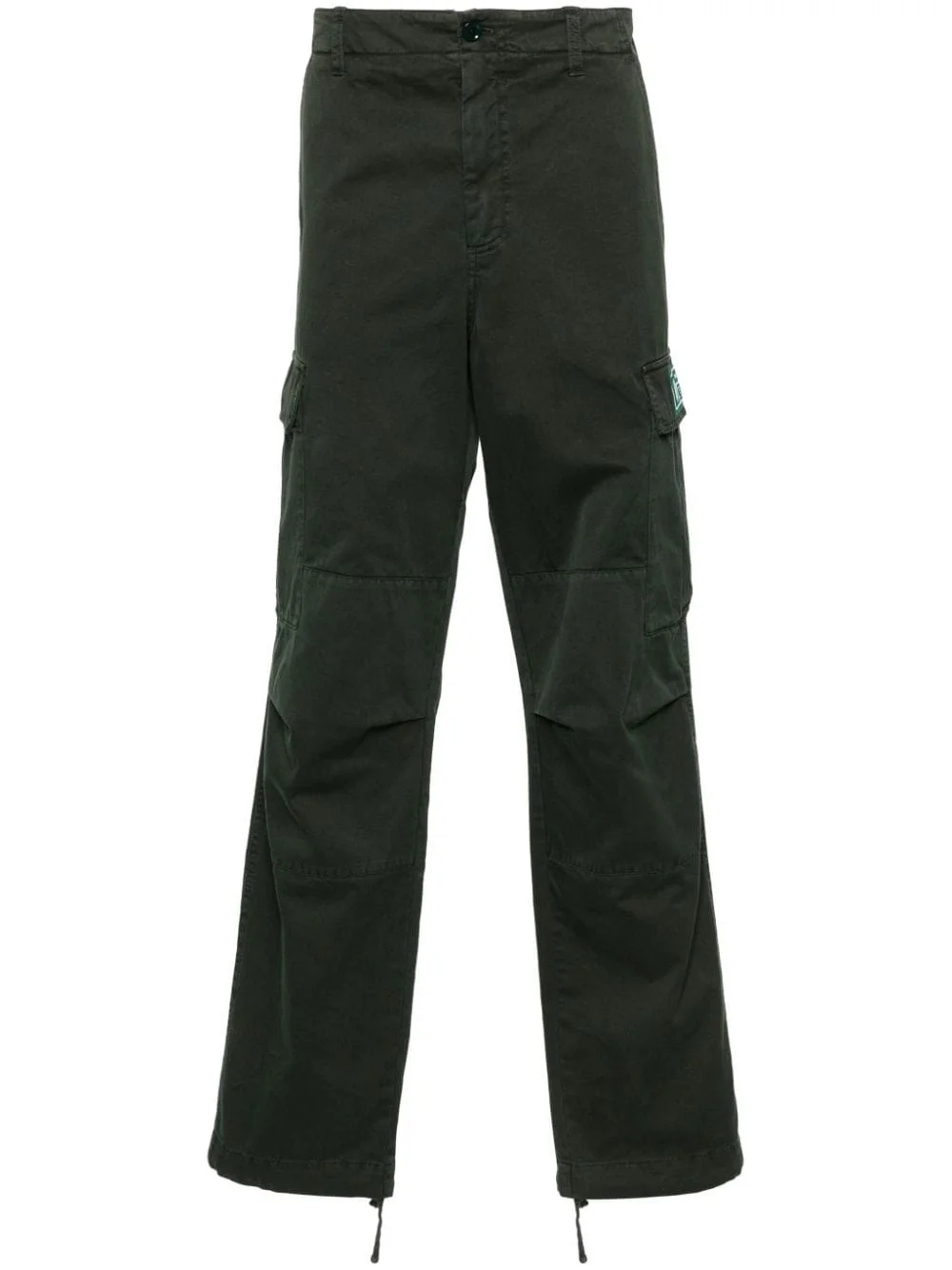 mid-rise twill cargo pants Highlights - Racing green - Cotton - Twill weave - Logo patch to the side - Mid-rise - Belt loops - Front button and zip fastening - Two diagonal pockets to the sides - Two side cargo pockets - Two rear flap pockets - Straight leg - Drawstring hem Made in Italy Composition Cotton 100% SIZE & FIT Model measurements Height 6 ft 2 in(1.88 m) Bust/Chest 35.43 in(90 cm) Hips 35.03 in(89 cm) Waist 27.95 in(71 cm) FittingInformation Designed for a straight-leg, allowing for an unrestricted and comfortable fit over the leg The internal drawstring at the hem allows for fitted preferences at the ankle Made from a midweight non-stretch fabric This piece fits true to size – take your usual size Washing instructions Machine Wash