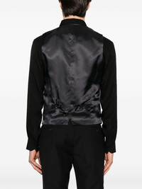 V-neck waistcoat Highlights - Navy blue - Front button fastening - Adjustable strap to the rear - Two front welt pockets - Dart detailing Made in Italy Composition Outer: Virgin Wool 82%, Silk 18% Lining: Viscose 100% SIZE & FIT Model measurements Height 6 ft 2 in(1.87 m) Bust/Chest 37.79 in(96 cm) Hips 37.79 in(96 cm) Waist 30.31 in(77 cm) FittingInformation Designed for a slim fit, offering a comfortable fit that sits just away from the body The adjustable tabs allow for fitted preferences Made from a midweight non-stretch fabric