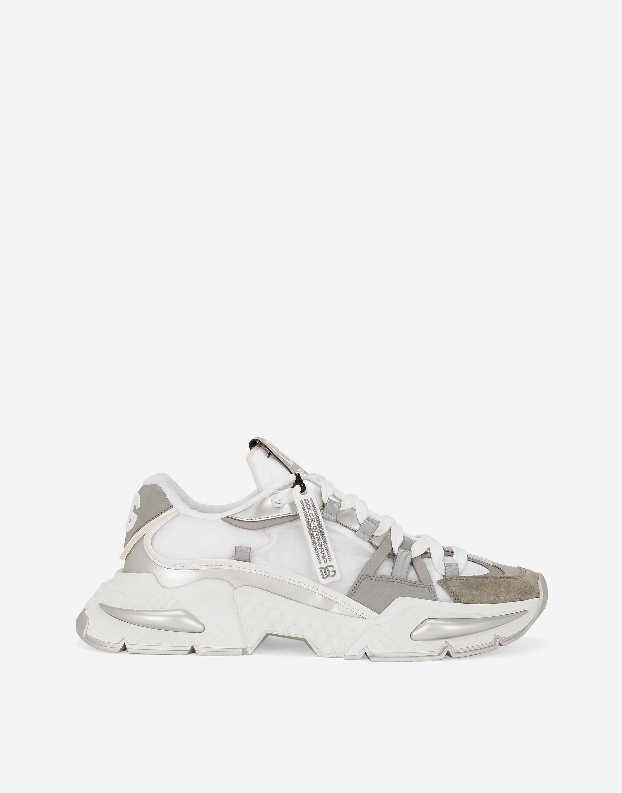 Featuring bold, dynamic allure, the Airmaster sneakers feature an ultra-light upper. Nylon Airmaster sneakers with suede and calfskin details: • White • Rubber label with micro-injection logo • Calfskin heel cup with DG logo • Flat laces • Branded tongue • Calfskin footbed with branded label • Item comes with a branded dust bag • Made in Italy External composition: 58% Polyamide 20% Calfskin 11% Viscose 5% Polyurethane 3% Polyester 2% Spandex 1% Cotton Internal composition: 70% Polyester 20% Polyamide 10% Lambskin