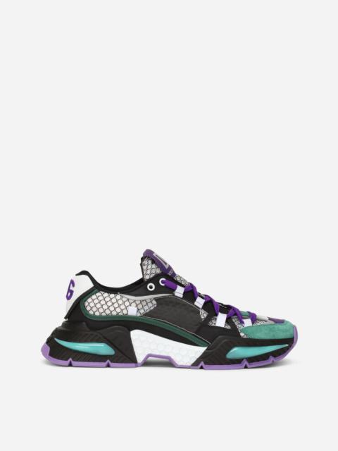 • Nylon, calfskin and suede upper • Detachable rubber label with micro-injection logo • Flat laces • Cotton terry cloth heel • Branded flexible rubber bottom assembly • Item comes with themed packaging • Made in Italy Care And Details External composition: 30% Polyester 20% Polyurethane 20% Calfskin 10% Spandex 10% Polyamide 10% Viscose Internal Composition: 50% Polyamide 20% Lambskin 20% Polyurethane 10% Acrylic