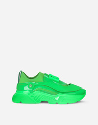 The new Daymaster slip-on sneakers feature a futuristic look and come in stretch mesh and patent leather. They feature a central maxi-logo and a rubberized calfskin element on the upper, that can be removed with the press-stud buttons: • Patent leather and nylon upper • Branded tape pull-tab • Calfskin footbed with branded label • Extra-light rubber bottom assembly • Item comes with themed packaging • Made in Italy Care And Details External composition: 30% Spandex 30% Polyamide 25% PVC 15% Calfskin