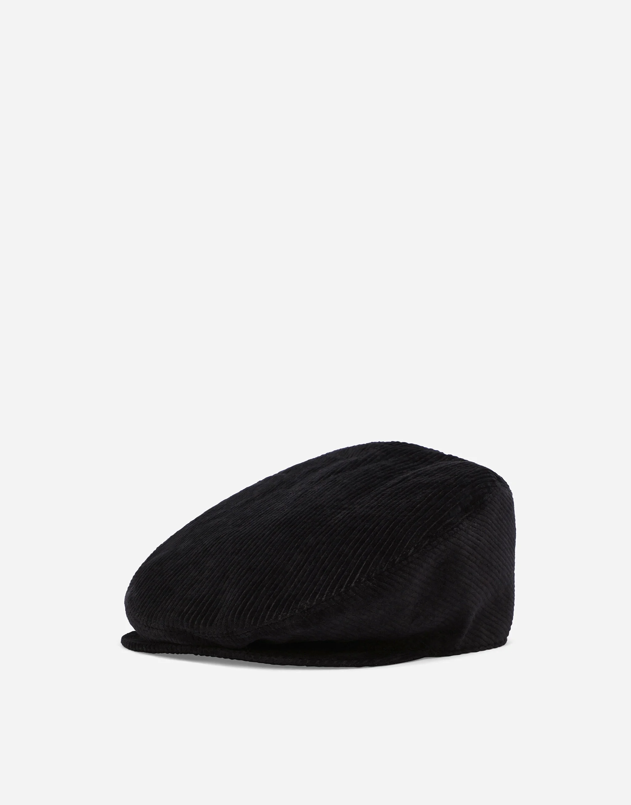 Stretch needlecord flat cap: • Black • Short semi-concealed peak • Gros-grain sweatband • Silk satin lining • Made in Italy Care And Details External composition: 98% Cotton 2% Spandex Internal composition: 100% Silk