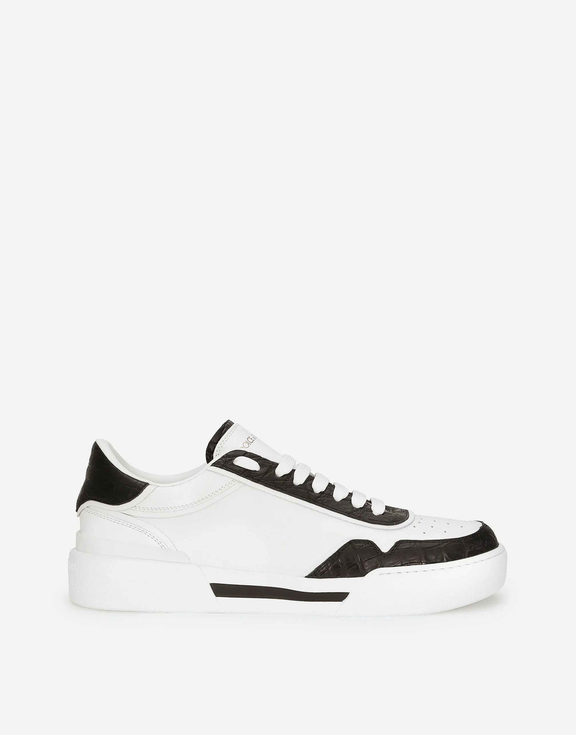 These New Roma sneakers come with new details. Flaunting bold, contemporary allure, they come in calfskin with crocodile details. Calfskin New Roma sneakers with crocodile details: • White • Contrasting crocodile heel cup • Flat laces • Branded tongue • Calfskin footbed with branded label • Branded rubber sole and bottom assembly • Item comes with a branded dust bag • Made in Italy External compositions: 60% Calfskin 40% Lambskin Internal composition: 54% Caiman 36% Lambskin 10% Goatskin