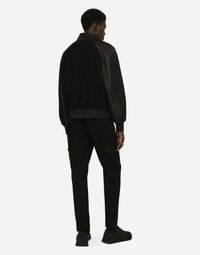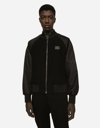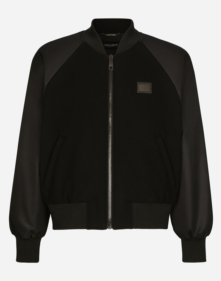 Wool jacket with nylon sleeves and a metal tag featuring the Dolce&Gabbana logo: • Light faux down padding on the interior • Regular fit • Front zipper fastening • Inner and outer welt pockets with zipper • Stretch knit neck, hem and cuffs • Nylon lining • The piece measures 63 cm from the rear collar seam on a size IT 48 • The model is 185 cm tall and wears a size IT 48 • Made in Italy Care And Details External composition: 60% Wool 40% Polyamide Internal composition: 100% Polyester