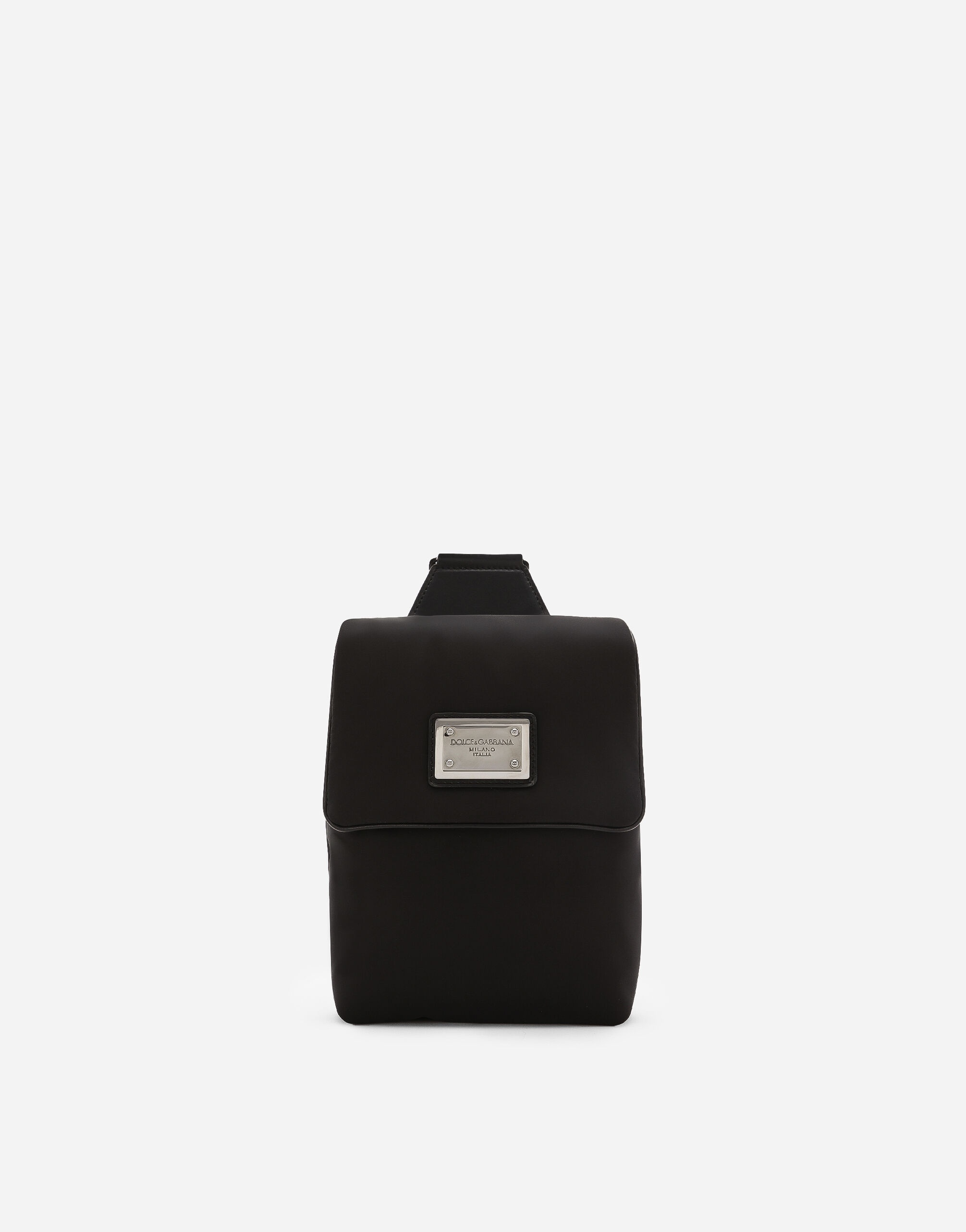 Practical and versatile, this new soft nylon belt bag features the logo tag. Nylon belt bag with logo tag: • Black • Concealed double magnetic fastening • Zipped calfskin back pocket with branded slider • Adjustable tape strap with calfskin details • Nylon lining and flat pocket • Item comes with a branded dust bag • Measurements: H23 x W16 x D5.5 cm • Made in Italy External composition: 80% Polyester 10% Calfskin 10% Nylon Internal composition: 95% Polyester 5% Calfskin