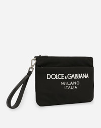 The brand’s iconic features adorn the logo. This pouch from the Nero Sicilia DNA range is crafted from soft nylon and features the Dolce&Gabbana Milano logo. Nylon pouch with rubberized Dolce&Gabbana Milano logo: • Black • Top fastening with zipper and slider with logo • Zipped flat pocket with branded slider • Detachable calfskin strap • Nylon lining • Item comes with a branded dust bag • Measurements: H18 x W28 x D0.5 cm • Made in Italy External composition: 50% Polyamide 20% Acrylic 15% Viscose 15% Calfskin Internal composition: 85% Polyamide 15% Calfskin
