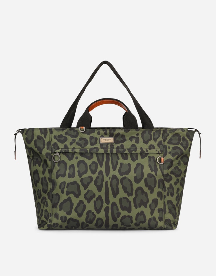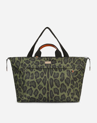The iconic leopard print, a signature of the brand, features a new modern and bold look thanks to the contrasts and nuances. Practical and spacious, this nylon travel bag features the branded plate with two metal plating finishes: • Top fastening with double zipper and branded slider in ultra-black ruthenium-plated metal • Double handles and adjustable and detachable tape strap with cowhide details • Flat front pocket with zipper and branded ring in ultra-black ruthenium-plated metal • Nylon lining featuring a zipped inner pocket and two compartments • Item comes with a branded dust bag • Measurements: 55 x 75 x 25 cm - 21.7 x 29.5 x 9.8 inches • Made in Italy Care And Details External composition: 95% Nylon 5% Calfskin Internal composition: 95% Nylon 5% Calfskin