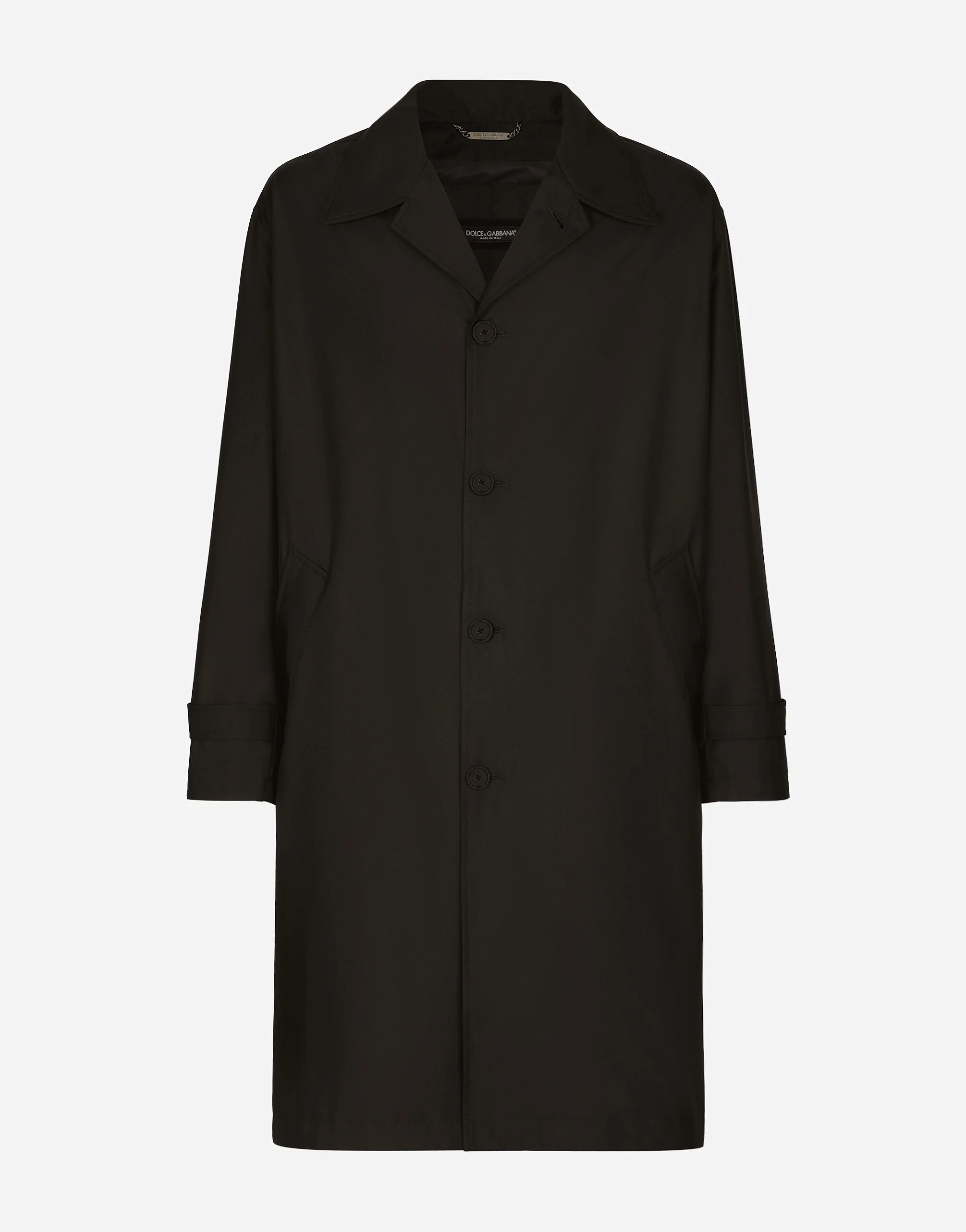 Single-breasted nylon trench coat with Dolce&Gabbana logo tag: • Regular fit • Button fastenings on the front • Outer flap pockets and inner welt pockets • Strap with button on cuffs • Lined • The piece measures 110 cm from the rear collar seam on a size IT 48 • The model is 185 cm tall and wears a size IT 48 • Made in Italy Care And Details External composition: 100% Polyester Internal composition: 99% Polyamide 1% Polyurethane