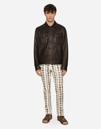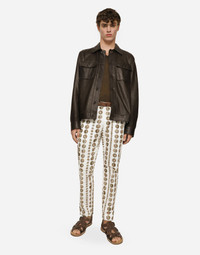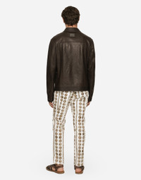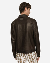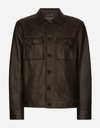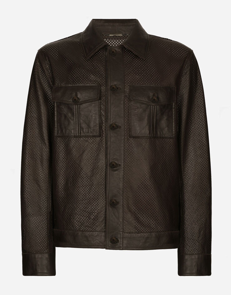 Openwork lambskin jacket with metal Dolce&Gabbana logo plate: • Brown • Regular fit • Kent collar • Long sleeves • Button fastenings • Buttoned patch pockets • The piece measures 65 cm from the rear collar seam on a size IT 48 • The model is 185 cm tall and wears a size IT 48 • Made in Italy Care And Details External composition: 100% Lambskin