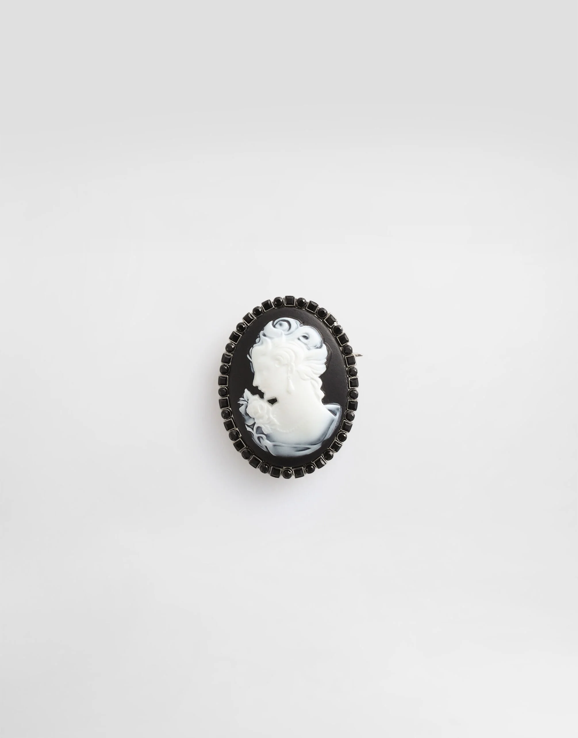 Lightness, Italian aesthetics, and effortless style define the Dolce&Gabbana Men's Spring/Summer 2026 Collection. Pyjamas take center stage, blurring lines between indoor and outdoor spaces with unexpected pairings. Made of striped jacquard cotton, they pair with cardigans, jackets, and sparkling decorations. Relaxed silhouettes, neutral tones with bold contrast details, and iconic accessories complete versatile looks. This oval cameo brooch in silver is an accessory that combines elegance and style, perfect for adding a distinctive touch to any look. Oval cameo brooch: • Silver • Made in Italy External composition: 50% Brass, 30% Plastic, 20% Glass