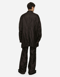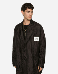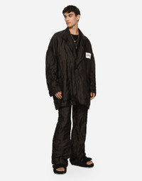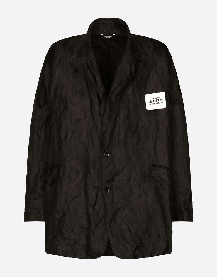 Deconstructed single-breasted jacket in metallic technical fabric and silk with Re-Edition Label: • Oversize fit • Peak lapels • Button fastenings on the front • Outer flap pockets • Buttoned cuffs • Central vent • Unlined • The piece measures 88 cm from the rear collar seam on a size M • The model is 185 cm tall and wears a size M • Made in Italy Care And Details External composition: 73% Metallic Fibers 27% Silk