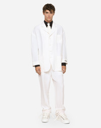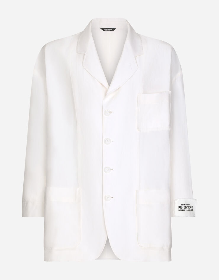 Deconstructed single-breasted jacket in linen and silk with the Re-Edition label: • Oversize fit • Notched lapels • Button fastenings on the front • Outer patch pockets and breast pocket • Buttoned cuffs • Central vent • Unlined • The piece measures 83 cm from the rear collar seam on a size M • The model is 185 cm tall and wears a size M • Made in Italy Care And Details External composition: 52% Linen 48% Silk