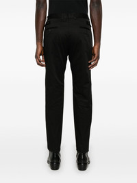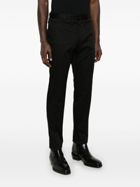 logo-embroidered trousers Highlights - Black - Front button and zip fastening - Belt loops - Two side slash pockets - Two rear button-fastening jetted pockets Made in Italy Composition Polyester 100%, Cotton 97%, Elastane 3% SIZE & FIT Model measurements Height 6 ft 0 in(1.84 m) Bust/Chest 35.82 in(91 cm) Hips 37 in(94 cm) Waist 28.34 in(72 cm) FittingInformation Designed for a slim tapered leg, offering a close fit that sits just away from the leg with a closer fit towards the ankle The unfinished hems allow for the length to be altered Made from a midweight non-stretch fabric