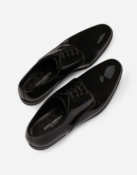 Elegance and sophistication meet in these derby, a symbol of timeless style for the modern man. Calfskin derby shoes: • Black • Flat laces • Made in Italy External composition: 100% Calfskin Internal composition: 95% Goatskin, 3% Viscose, 2% Silk