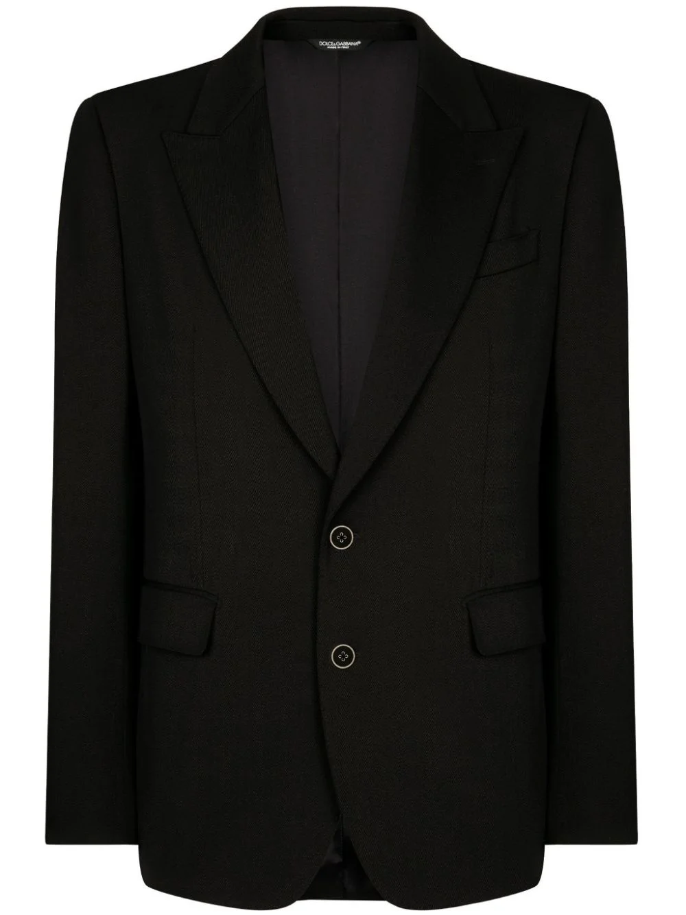 peak lapel single-breasted jacket Highlights - Black - Peak lapels - Front button fastening - Long sleeves - Buttoned-cuff sleeves - Two front flap pockets Made in Italy Composition Outer: Polyester 54%, Wool 44%, Spandex/Elastane 2% Lining: Viscose 100%