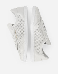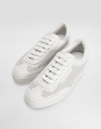 Understated and timeless, the Saint Tropez sneakers are coming in new materials. Perforated calfskin Saint Tropez Portofino sneakers featuring the Dolce&Gabbana logo: • White • Calfskin heel cup • Flat laces • Calfskin footbed with branded label • Branded rubber sole and bottom assembly • Item comes with a branded dust bag • Made in Italy External composition: 60% Calfskin 40% Lambskin Internal composition: 100% Goatskin