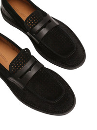 perforated loafers Highlights - Black - Flat rubber sole - Silver-tone logo lettering - Penny slot Made in Italy Composition Outer: CALFSKIN 100% Lining: CALFSKIN 90%, Goat Skin 10% Sole: Rubber 100%