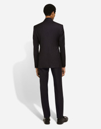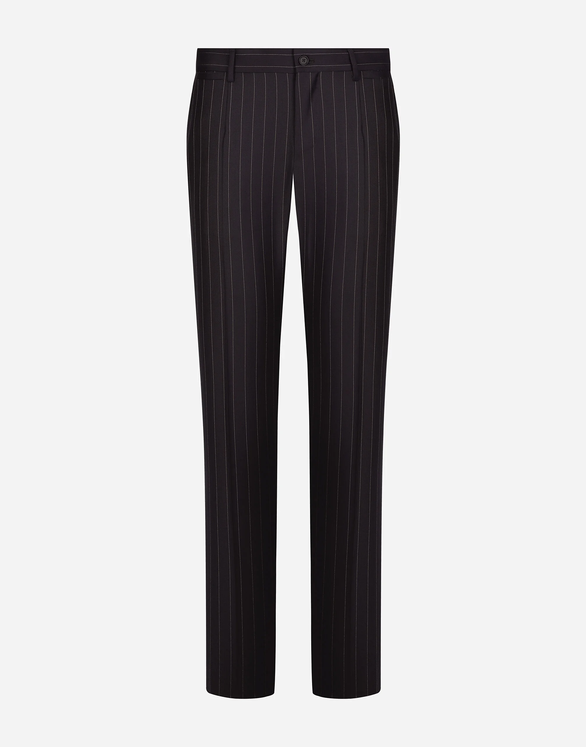 In the “Sartoriale” collection, iconic Italian sartorial heritage is presented from a new perspective, made up of lines, silhouettes and details, concealed buttoning, geometric lapels, and jackets that have seen their proportions completely overhauled. The tale is a journey embarked upon to discover a new kind of tailoring that is perfect in terms of fit, with meticulous attention to detail, that strives to speak and represent the style of the wearer, through small - yet significant - details that will make every piece unique. Tailored pinstripe wool pants: • Blue • Regular fit • Belt loops on the waist • Fly-covered zipper and button fastening • Front slant pockets and buttoned welt pockets at the back • The item measures 115.5 cm on the outer leg and the hem is 17.5 cm wide on a size IT 48 • Made in Italy External composition: 100% Virgin Wool