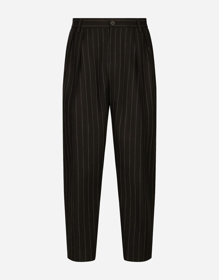 Tailored pinstripe wool pants: • Black • Regular fit • Belt loops on the waist • Fly-covered zipper and button fastening • Double darts • Front slant pockets and buttoned welt pockets at the back • The item measures 95 cm on the outer leg and the hem is 17 cm wide on a size IT 48 • The model is 185 cm tall and wears a size IT 48 • Made in Italy Care And Details External composition: 100% Wool