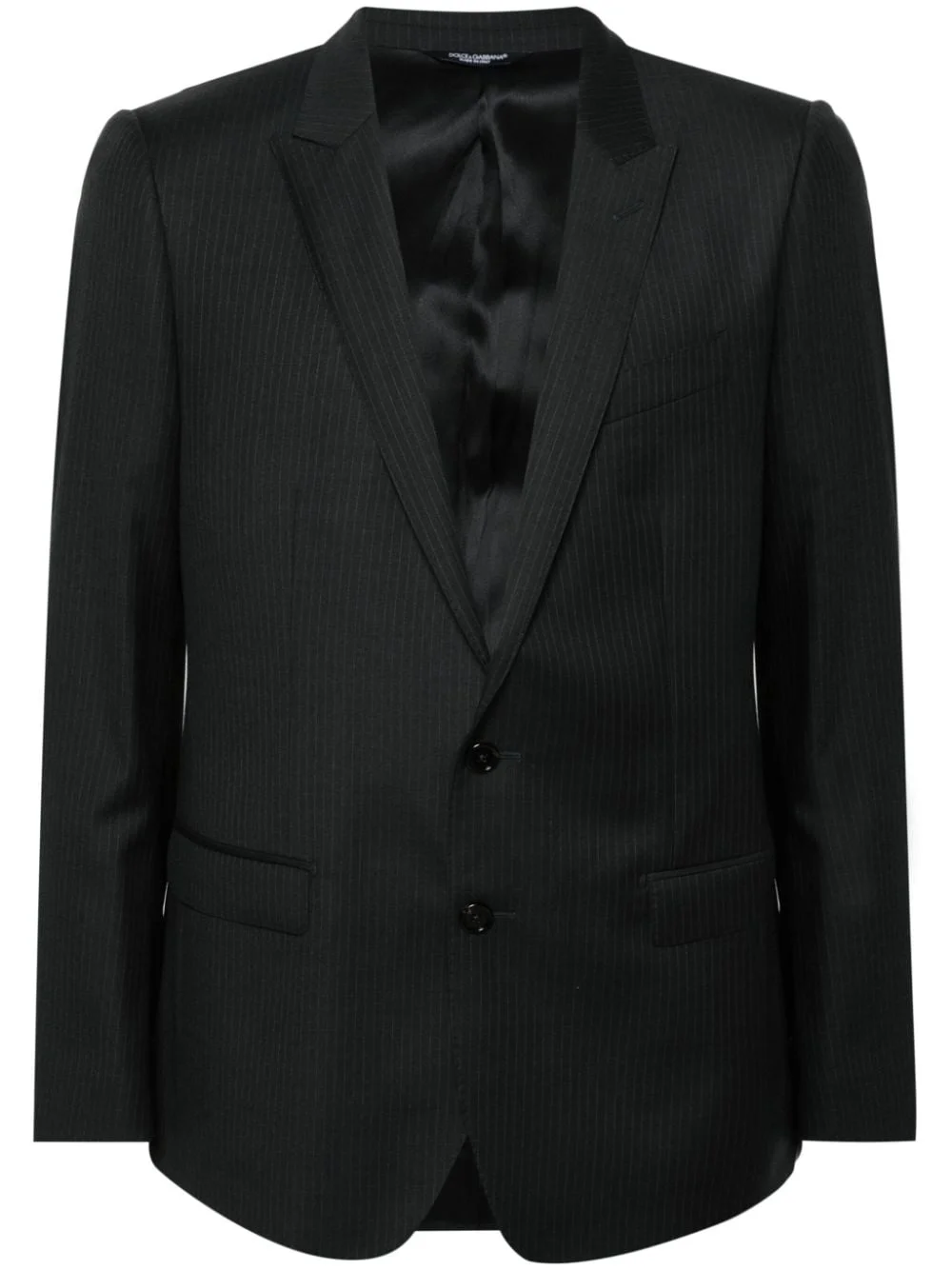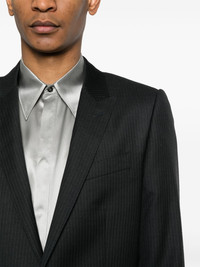 pinstriped virgin-wool blazer Highlights - Black/grey - Virgin wool - Twill weave - Pinstripe pattern - Dart detailing - Peak lapels - Shoulder pads - Long sleeves - Buttoned cuffs - American rear vent - Chest welt pocket - Two front flap pockets - Three internal jetted pockets - Front button fastening - Curved hem - Silk lining Made in Italy Composition Outer: Virgin Wool 100% Lining: Silk 100% SIZE & FIT Model measurements Height 6 ft 2 in(1.87 m) Bust/Chest 37 in(94 cm) Hips 33.85 in(86 cm) Waist 27.95 in(71 cm) FittingInformation Designed for a slim fit, offering a comfortable fit that sits just away from the body The vented hem offers movement at the rear Made from a midweight non-stretch fabric This piece fits true to size – take your usual size