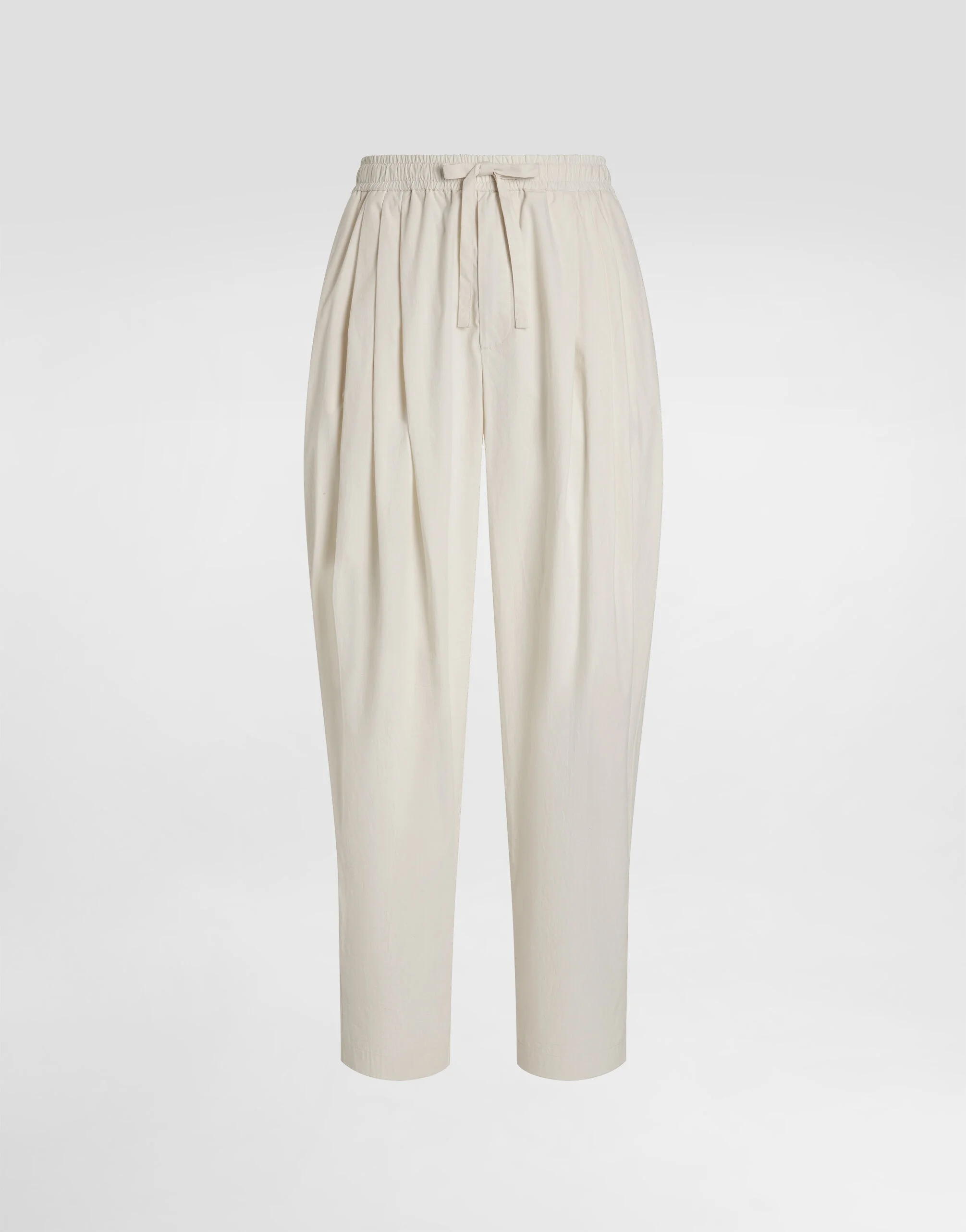 These trousers are perfect for a casual yet sophisticated look. Made of cotton poplin, they offer comfort and style for any occasion. Cotton poplin trousers: • Beige • Fabric belt • The model is 185 cm tall and wears a size 48 IT • Made in Italy External Composition: 97% Cotton, 3% Elastane